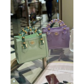 In the Spring Summer 2025 collection, Gucci Diana reinterprets the signature bamboo hardware with resin and brass details. This style can also be worn crossbody or over the shoulder.